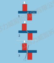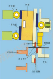 機(jī)床在剪切不同規(guī)格的板料時(shí),通過調(diào)整剪切角的大小, 使得被剪切的材料扭曲量減小到最小的狀態(tài)。 |