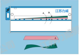 三點(diǎn)滾輪導(dǎo)軌結(jié)構(gòu),前預(yù)壓導(dǎo)軌(C)使刀架始終貼在上導(dǎo)軌 (B)和小導(dǎo)軌(A)上作無間隙往復(fù)動(dòng)作,在剪切不同 板料時(shí),刀片間隙可調(diào),使剪切質(zhì)量更好。 |