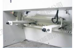 具有機(jī)動(dòng)后檔料調(diào)節(jié)功能。后檔料采用電子顯示,其記數(shù)器具有設(shè)置和記憶功能。提供了前進(jìn),后退和微動(dòng)三種調(diào)節(jié)功能。當(dāng)用戶所剪板料尺寸超過后擋料的擋料范圍時(shí),可為用戶提供后擋料抬起功能(選擇配置),讓超長(zhǎng)板料不受限制。 |
