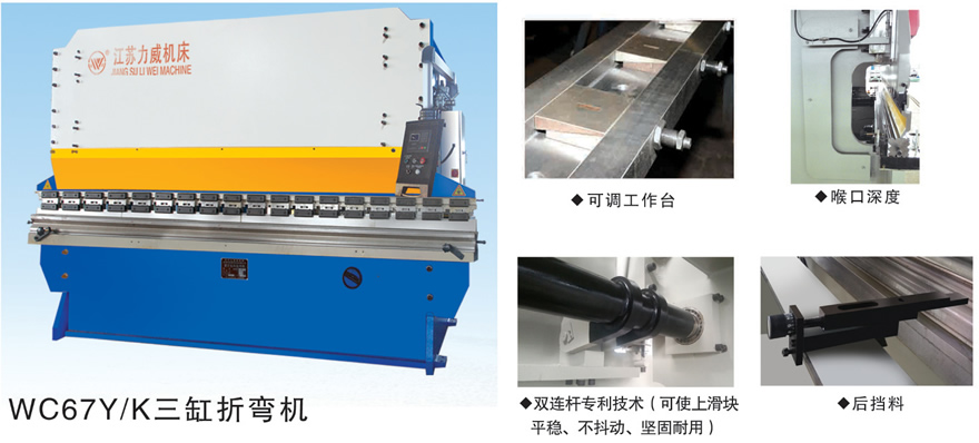 上模配有撓度補(bǔ)償機(jī)構(gòu),250噸和長(zhǎng)度4000MM以上采用下?lián)隙妊a(bǔ)償機(jī)構(gòu)。